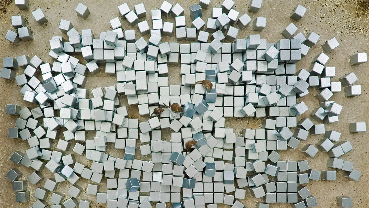 While doing research for his film THE NET, Lutz Dammbeck came across the groundbreaking exhibition “Software – Information Technology: Its New Meaning for Art”, which took place at the Jewish Museum in New York in 1970. Curated by Jack Burnham, this exhibition presented the symbiosis of conceptual and media art with what were then new technologies developed for the American military. One of the central exhibits was the installation Seek by the Architecture Machine Group of the Massachusetts Institute of Technology (MIT). In this cybernetic model of the world, a computer system interacted with a group of 25 Mongolian gerbils, whereby the computer tried to organize the chaotic behavior of the animals and make it predictable.